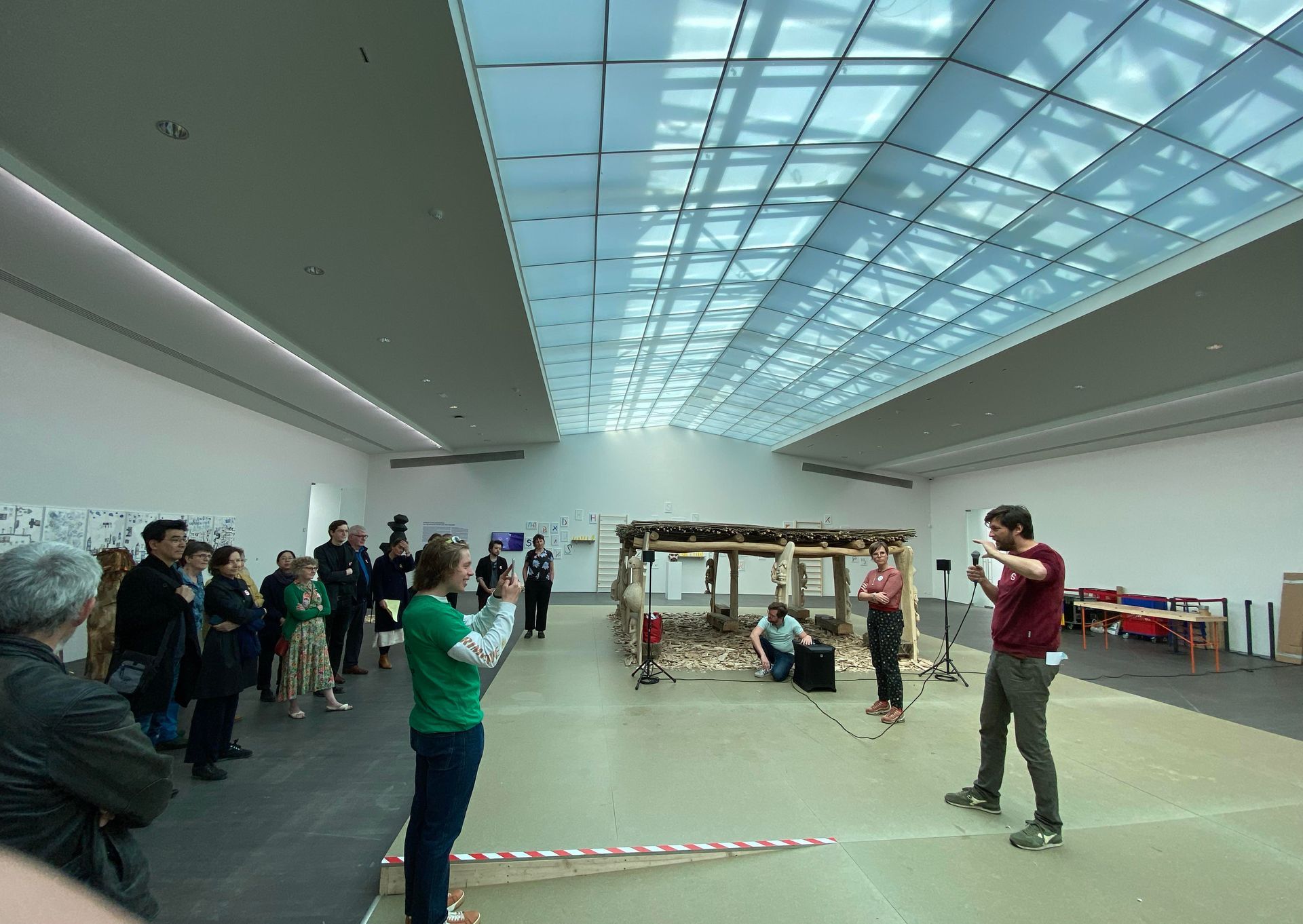 Installatie met sculpturen Museum voor actuele kunsten in Gent, België